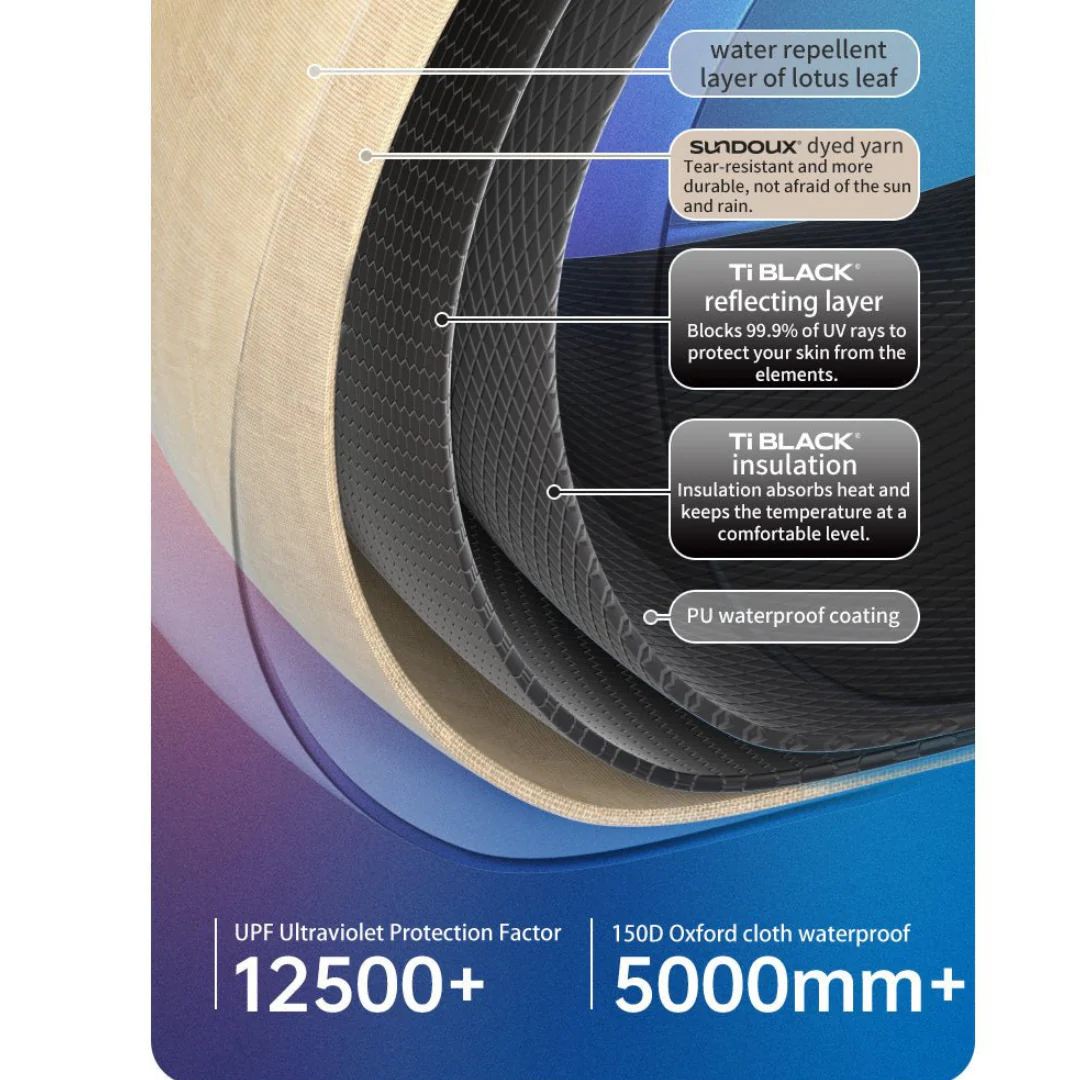 – جنس پارچه: از پارچه‌ی مقاوم 150D تیتانیوم اکسفورد با پوشش ضدآب PU5000mm، که در برابر باران و رطوبت کاملاً محافظت می‌کند.