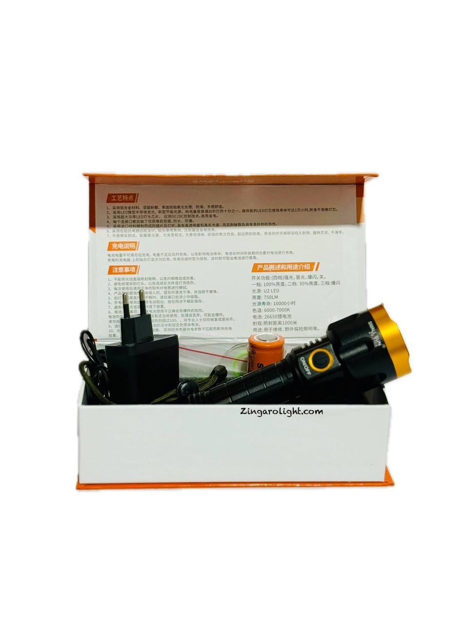 اطعام این چراغ قوه توسط یک عدد باتری لیتیومی قابل شارژ در اندازه 26650 با توان 4800 میلی آمپر می باشد.